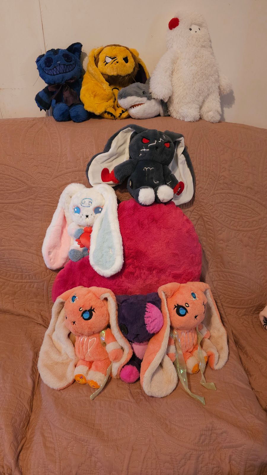 So adorable, so cuddle-able. Soft & sweet & really pretty - their eyes match the cancer zodiac ♋️ sign on the forehead - light blue + a more minty blue-green. Love that the bun is holding a crab since this is so symbolic for the cancer zodiac, too. Legs are shorter/stubbier than any of my other plushes & I appreciate the variety plus it adds to the cuteness factor.