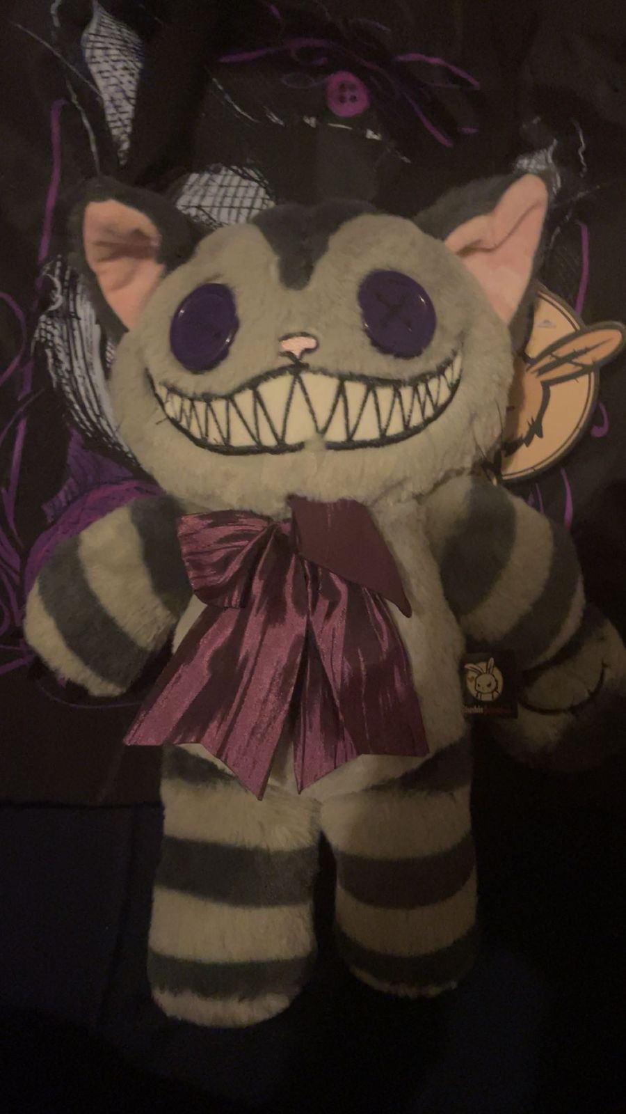 I have purchased several critters from PlushieDreadfulls over the years, all of the plushies are of very high quality. The amount of detail and work that goes into them is insane! And I love the bag that comes with it. I was so excited to see not only a cat plushie, but a Cheshire Cat plushie! He's so adorable that I'm tempted to buy another one!